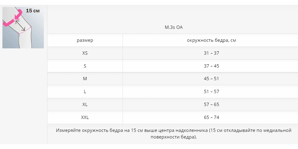 | Измеряйте окружность бедра на 15 см выше центра надколенника (15 см откладывайте по медиальной поверхности бедра). | ||