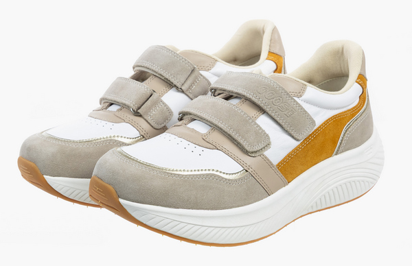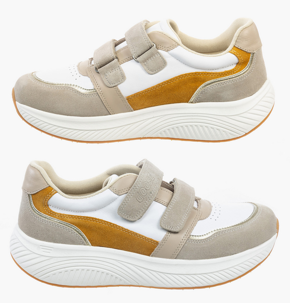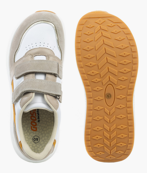 Особенностью моделей GOOSE является увеличенный мыс и эргономичная колодка. Обувь подойдет при повышенной полноте стопы, деформациях пальцев и суставов, при Hallux Valgus. Кроссовки в стиле спорт-кэжуал это отличный вариант для повседневных активностей в ритме города. Стопа чувствует себя свободно: пальцы не сдавливаются, исчезают болезненность и дискомфорт в ногах. Плотный задник предотвращает завал стопы, а мягкая подушечка вокруг голеностопа защищает от натирания. Анатомическая стелька поддерживает своды во время движения. Верх кроссовок выполнен из натуральной кожи и сетчатого текстиля, что позволяет стопам дышать, предотвращая потливость стоп. Амортизирующая подошва с легким перекатом поглощает ударные вибрации и равномерно распределяет нагрузку на суставы, существенно облегчая усталость. Протектор из резины способствует устойчивости на гладких поверхностях.