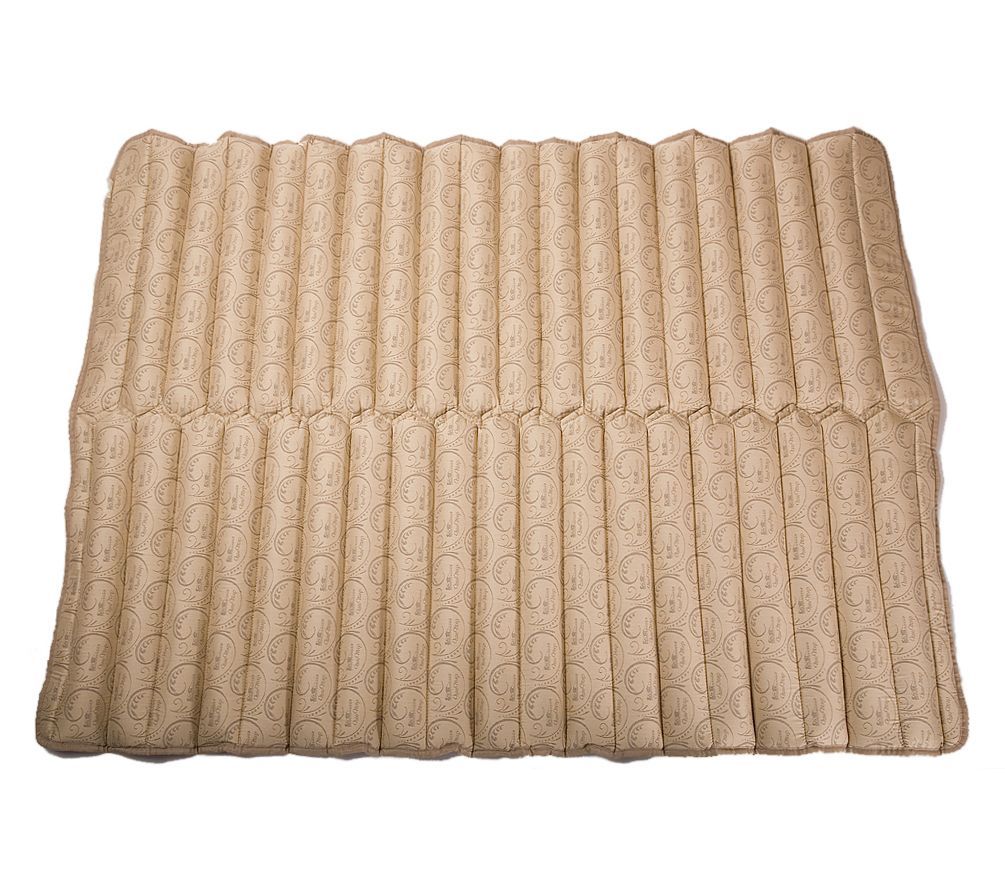 Матрас предназначен для усовершенствования и компенсации конструктивных недостатков стандартных спальных мест, а также снятия дискомфорта и эффекта «затекания тела» во время сна. Прекрасные теплоизоляционные свойства ортопедического матраса делают его использование комфортным вне зависимости от времени года, а небольшие промежуточные пространства между элементами гранулированного наполнителя матраса способствуют вентиляции изделия, давая ему возможность "дышать". Матрас состоит из выпуклых сегментов, придающих внешней поверхности волнообразную форму. Позвоночник за счет своей эластичности стремится вытянуться вдоль "волны", в результате чего восстанавливается естественная форма межпозвонковых дисков, уменьшается степень их деформации и высыхания, снимается напряжение, вызванное вертикальным давлением на позвоночник во время сидения и ходьбы. Благодаря специальному наполнителю сегментов матраса - гранулам пенополистирола (полистирола вспененного) в форме шариков, происходит микромассаж поверхностных элементов организма: кожи, кровеносной системы, межпозвонковых дисков, лимфатических узлов, поверхностных мышц, нервных узлов. Выпуклые по поверхности сегменты матраса (около 10 см шириной) производят макромассаж позвоночника, крупных мышц шеи и плеч, спины, таза и ног, кровеносной и лимфо-системы этих органов. Такой двухуровневый массаж позволяет снимать избыточный тонус и усталость во всех мышцах от шеи до ног, исключает возможность застойных явлений крови в спине, ягодицах и ногах, способствует поддержанию позвоночника в максимально комфортном состоянии.