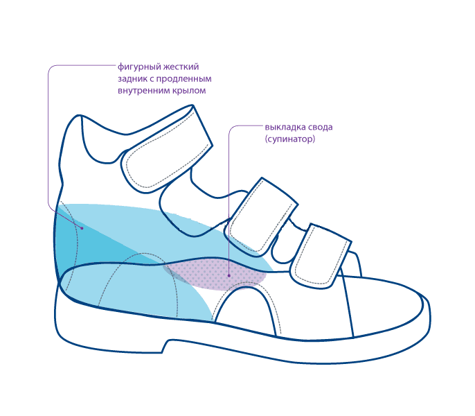 - выкладка сводов (супинатор) – специальный элемент из эластичного материала, который предотвращает развитие плоскостопия, обеспечивает поддержку сводов и тренировку связочно-мышечного аппарата. Применяется в обуви, начиная только с 22 размера!